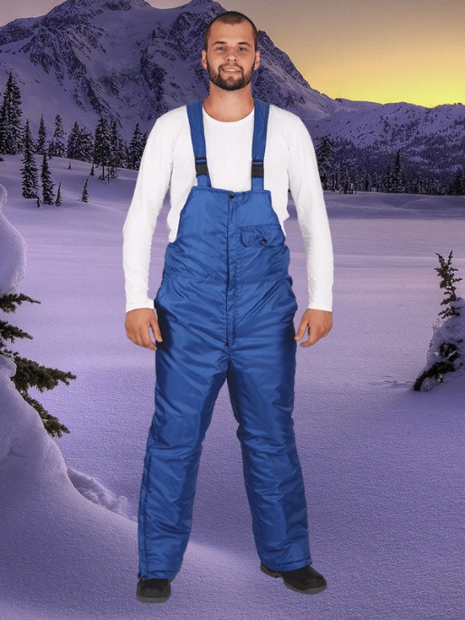 Утепленный полукомбинезон с центральной застежкой на двухзамковую молнию.